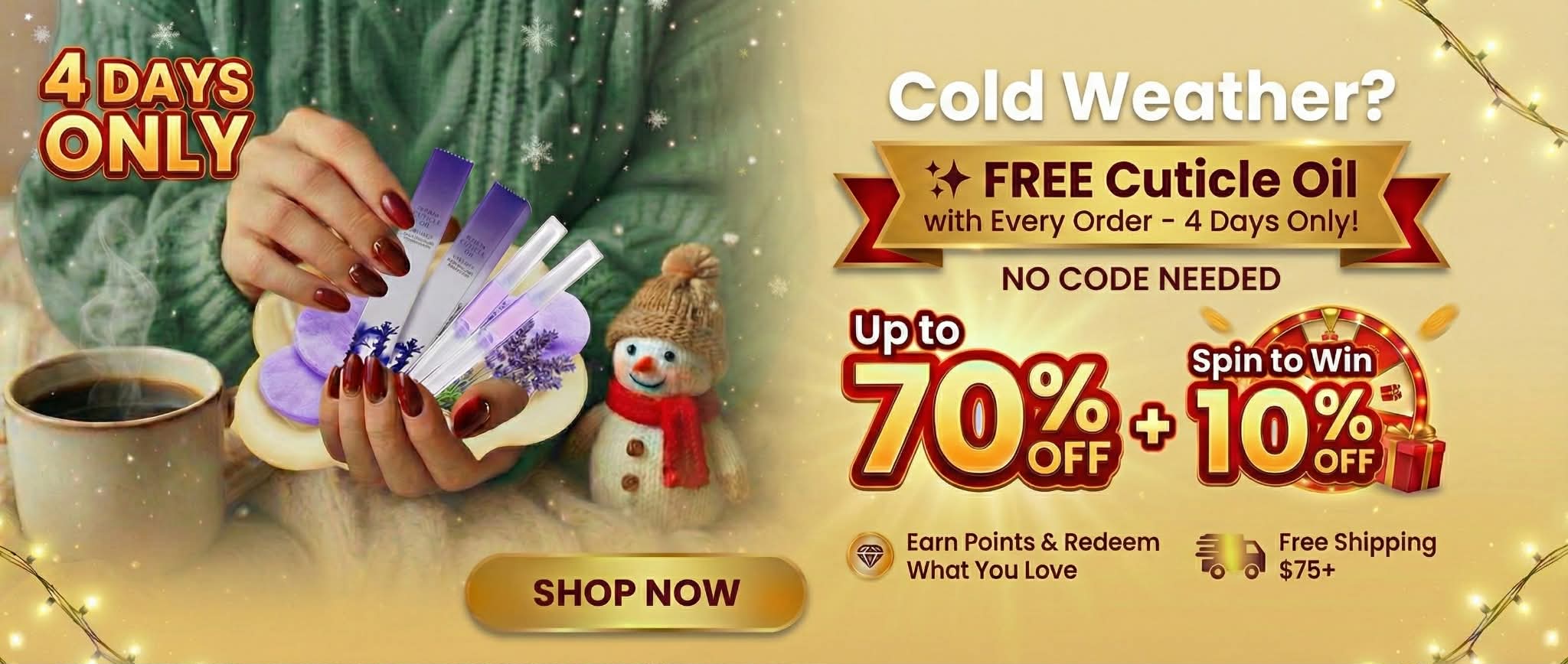 FREE CUTICLE OIL AUTOMATICALLY INCLUDED IN YOUR PACKAGE WITH EVERY ORDER.