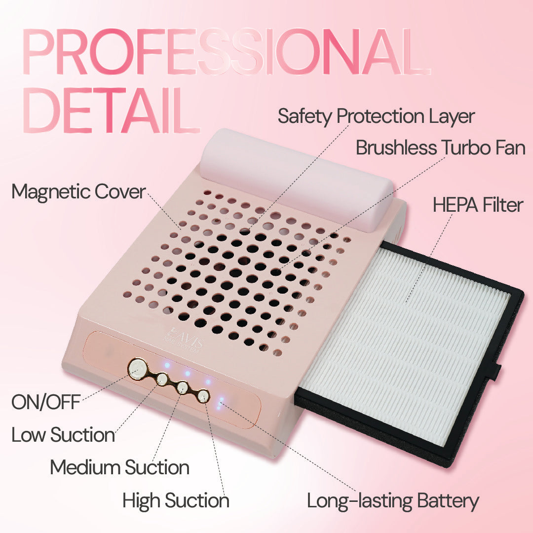 Say goodbye to messy workspaces and airborne dust. The LAVIS 70W Nail Dust Collector is your must-have companion for clean, efficient manicures. Designed with a powerful fan and strong suction, it ensures a 100% vacuum effect — capturing fine dust and debris during drilling, filing, and shaping. Keep your nail station spotless and your air clean with ease.