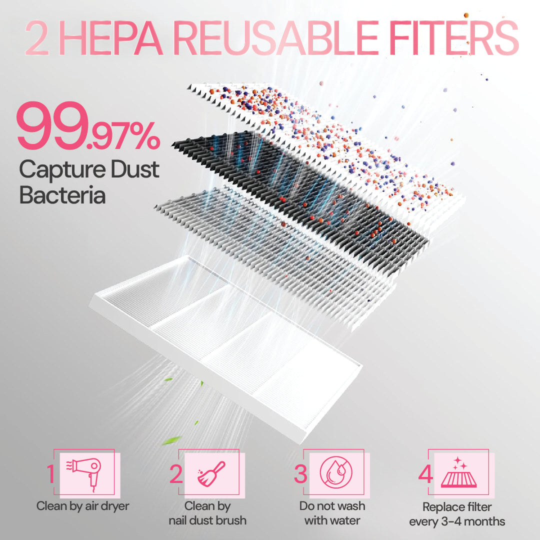 High-Performance Suction: 70W of powerful suction efficiently removes nail dust, keeping your workspace clean and breathable.