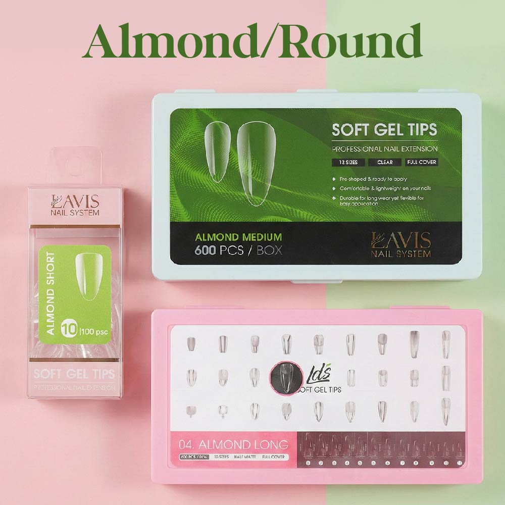 LAVIS Almond Medium - 12 Sizes Clear - Soft Gel Tips