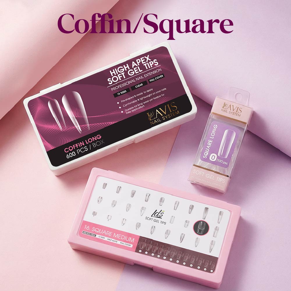 LAVIS Squoval S - 15 Sizes Full Etched - Soft Gel Tips
