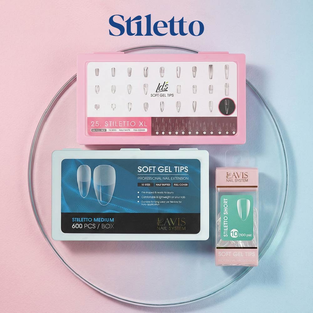 LAVIS Stiletto Medium - 10 Sizes Half Buffed - Soft Gel Tips